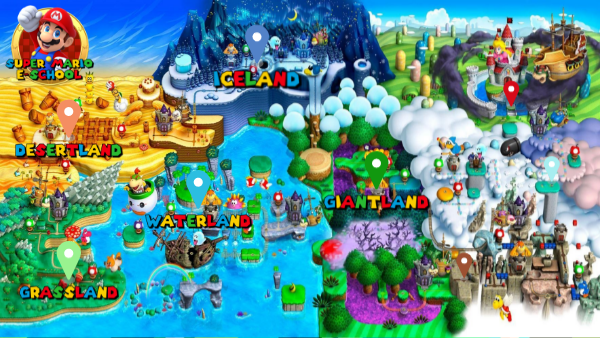 Para poder ayudar a Mario, tendrás que superar 5 mundos: el Mediterraneoworld, el Oceanicoworld, el Continentalworld, el Montañaworld y el Polarworld. Para ello , tendrás que hacer el reto que encontrarás en uno de los bloques, de cada mundo. Una vez superado te dará una estrella, que contiene unas letras, que te servirán más adelante para salvar a Peach. Una vez superes todos los mundos, estarás preparado para luchar contra Bowser.