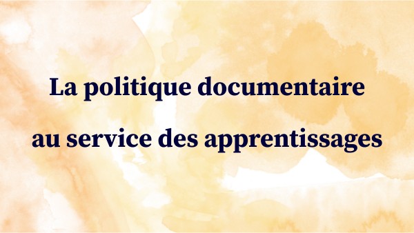 "La politique documentaire comprend la définition des modalités de la formation des élèves, le recensement et l'analyse de leurs besoins et de ceux des enseignants en matière d'information et de documentation, la définition et la gestion des ressources physiques et numériques pour l'établissement ainsi que le choix des leurs modalités d'accès au CDI, dans l'établissement, à la maison et en mobilité. La politique documentaire s'inscrit dans le volet pédagogique du projet de l'établissement et ne se limite ni à une politique d'acquisition de ressources, ni à l'organisation d'un espace multimédia au sein du CDI". Circulaire de mission de 2017
