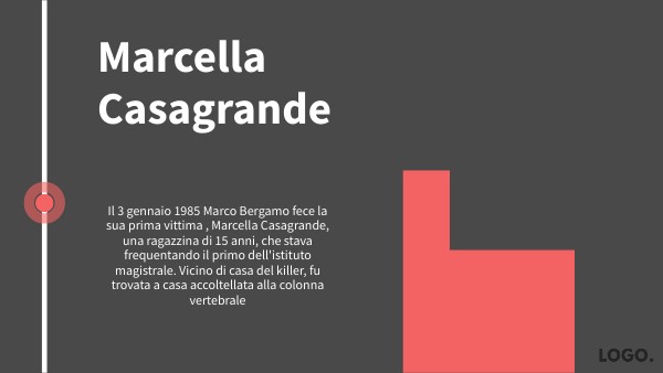 Il 3 gennaio 1985 Marco Bergamo fece la sua prima vittima , Marcella Casagrande, una ragazzina di 15 anni, che stava frequentando il primo dell'istituto magistrale. Vicino di casa del killer, fu trovata a casa accoltellata alla colonna vertebrale