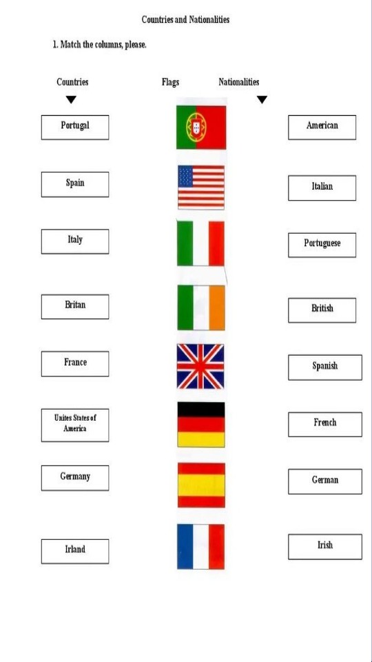 Actividad interactiva para trabajar los países, gentilicios y sus banderas en inglés
