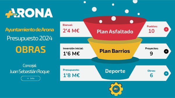 Presentación de las obras previstas en Arona para 2024 y para el actual mandato (presupuesto y planes de asfaltado, de barrios y de infraestructuras).