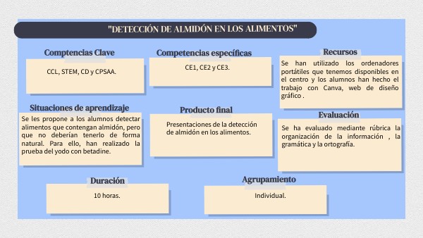 Se les propone a los alumnos detectar alimentos que contengan almidón, pero que no deberían tenerlo de forma natural. Para ello, han realizado la prueba del yodo con betadine.