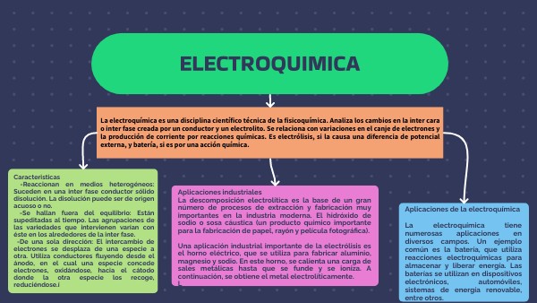 Aplicaciones de la electroquímica La electroquímica tiene numerosas aplicaciones en diversos campos. Un ejemplo común es la batería, que utiliza reacciones electroquímicas para almacenar y liberar energía. Las baterías se utilizan en dispositivos electrónicos, automóviles, sistemas de energía renovable, entre otros.