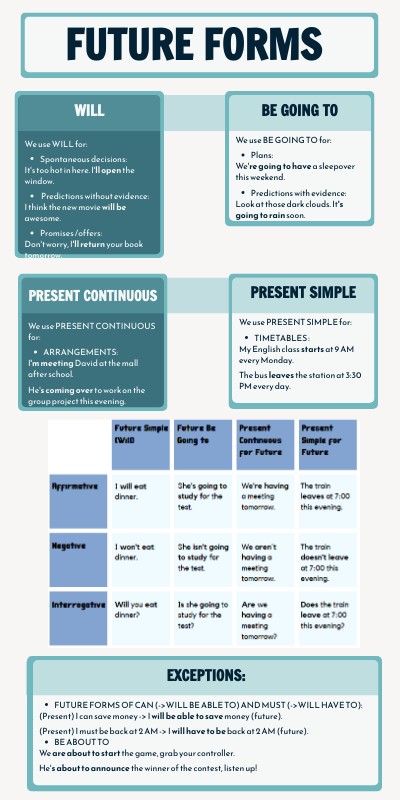 - FUTURE FORMS OF CAN (->WILL BE ABLE TO) AND MUST (->WILL HAVE TO):
