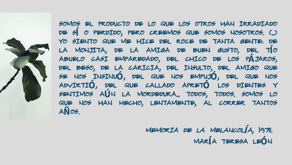 Somos el producto de lo que los otros han irradiado de sí o perdido, pero creemos que somos nosotros. (...) Yo siento que me hice del roce de tanta gente: de la monjita, de la amiga de buen gusto, del tío abuelo casi emparedado, del chico de los pájaros, del beso, de la caricia, del insulto, del amigo que se nos insinuó, del que nos advirtió, del que callado apretó los dientes y sentimos aún la mordedura...
