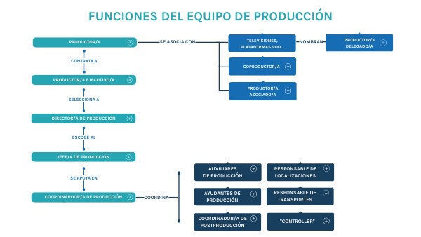 Es la figura encargada de la gestión del proyecto y sus presupuestos y es seleccionada por el Productor. Sus funciones son: - Elaborar el Plan de Producción (un calendario con las fechas clave de cada una de las fases) - Agrupar secuencias en jornadas de rodaje para abaratar costes. - Elaborar los presupuestos. - Proponen a los jefes de equipo y opinan sobre el casting.