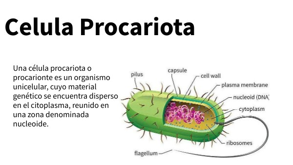 Una célula procariota o procarionte es un organismo unicelular, cuyo material genético se encuentra disperso en el citoplasma, reunido en una zona denominada nucleoide.