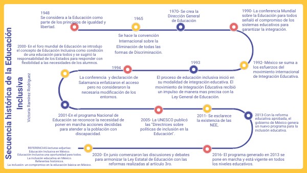 1993 El proceso de educación inclusiva inició en su modalidad de integración educativa. El movimiento de Integración Educativa recibió un impulso de manera mas precisa con la Ley General de Educación.