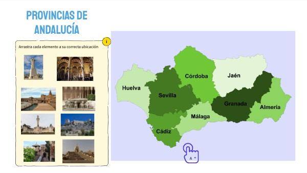 Para profes Haz que tu alumnado aprenda las provincias de Andalucía y algunos de sus monumentos de una forma divertida e interactiva. Para el alumnado Arrastra y suelta los monumentos de Andalucía en su provincia.