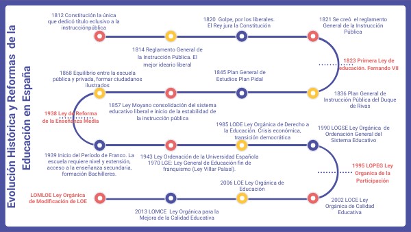 1943 Ley Ordenación de la Universidad Española1970 LGE: Ley General de Educación fin de franquismo (Ley Villar Palasí).