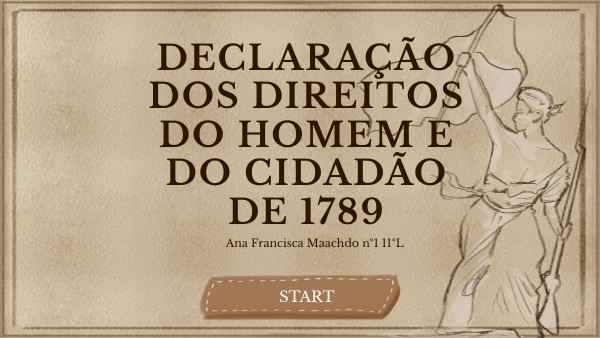 A declaração dos direitos do Homem e do Cidadão, foi aprovada pela assembleia constituinte nacional a 26 de agosto de 1789 e foi o primeiro passo para constituição da república Francesa. É um documento que surge no século das luzes ou seja durante o Iluminismo, época de mudança, progresso e razão. Esta declarção é composta por que defendem essencialmente a liberdade, igualdade e a fraternidade tal como a divisão de poderes, e visa terminar com o absolutismo vivído na época. Apesar de possuir algumas imperfeições graves como a não inclusão da mulher, este artigo foi um grande avanço para a socieadade.