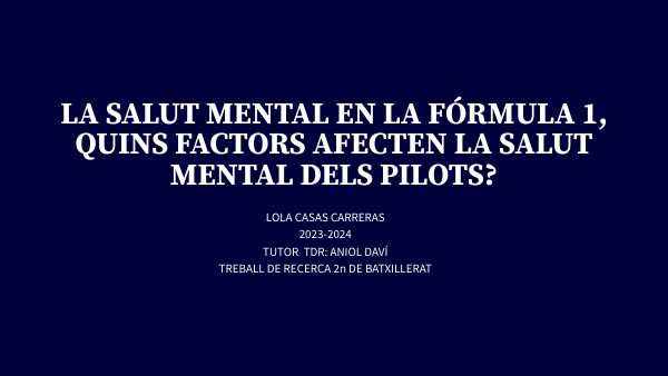 LA SALUT MENTAL EN LA FÓRMULA 1, QUINS FACTORS AFECTEN LA SALUT MENTAL DELS PILOTS?