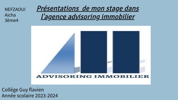 Présentations de mon stage dans l'agence advisoring immobilier