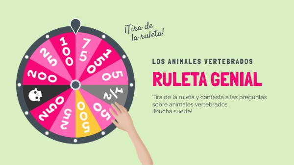 Tira de la ruleta y contesta a las preguntas sobre animales vertebrados.¡Mucha suerte!
