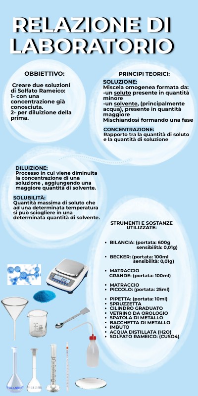 Creare due soluzioni di Solfato Rameico:1- con una concentrazione già conosciuta. 2- per diluizione della prima.