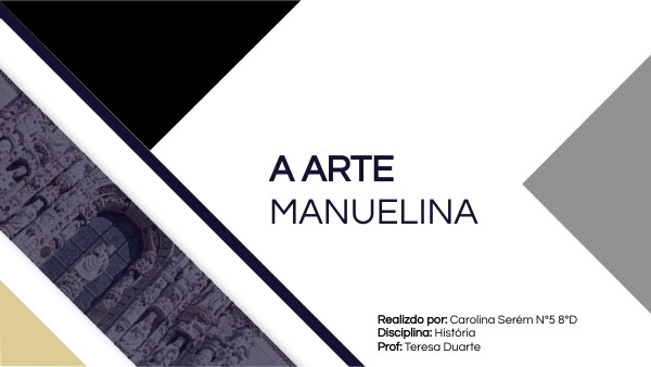 Com este trabalho que realizei tenho como objetivo apresentar, essencialmente, um resumo das principais informações da história do "Manuelino", as suas caracteristicas e as suas construções.
