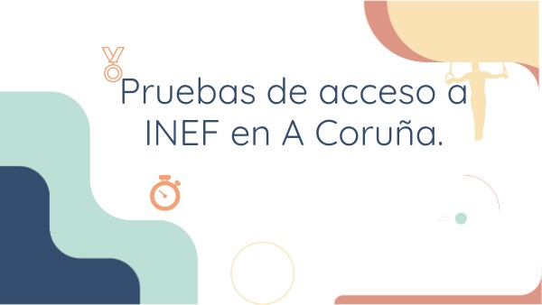 Estas pruebas se aplicarán a quienes, para el Curso próximo soliciten iniciar estudios en el grado de Ciencias de la Actividad Física y del Deporte (INEF) en la Universidad de A Coruña. Estas pruebas son 5 y se dividen en 3 bloques. En el primer bloque tenemos 1 prueba de adaptación al medio acuático. En el segundo bloque tenemos 3 pruebas, la primera es una prueba de agilidad en el suelo, la segunda es una carrera con obstáculos y la tercera una prueba de habilidad con el balón. En el tercer bloque tenemos la última prueba, una prueba de resistencia cíclica.