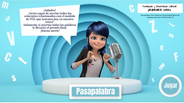 ¡Saludos!¿Serás capaz de acertar todos las conceptos relacionados con el módulo de FOL que tenemos hoy en nuestro rosco? Solamente si aciertas todas las palabras te llevarás el premio final. ¡Buena suerte!