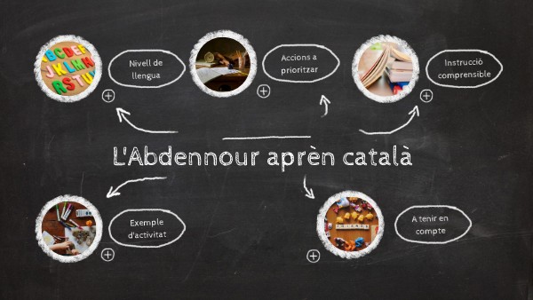 Com que l'Abdennour acaba d'arribar, prioritzarem aquelles activitats que treballen la llengua oral, per tal que l'alumne es pugui comunicar. També treballarem aquell vocabulari d'ús més quotidià (material escolar, colors, rutines...), per tal que pugui entendre el màxim possible. Sempre de manera contextualitzada i propera als seus interessos. Com que l'Abdennour conèix l'alfabet llatí, podrem anar escrivint oracions per treballar tot allò que hem anat fent de manera oral. Corregirem alguns erors, però li donarem llibertat per tal que escrigui sense por a equivocar-se. També farem activitats amb els companys, per tal que pugui practicar la llengua d'una manera més informal.