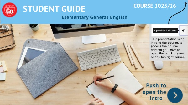 This presentation is an intro to the course, to access the course content you have to open the block drawer on the top right corner.
