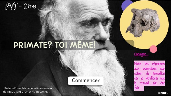 En 1859, Charles Darwin publie son livre "l'origine des espèces". Ce livre a été beaucoup critiqué, et l'image ci-contre en est devenue le symbole. Elle véhicule pourtant une idée fausse. Nous allons tenter de comprendre la place de l'Homme dans l'évolution