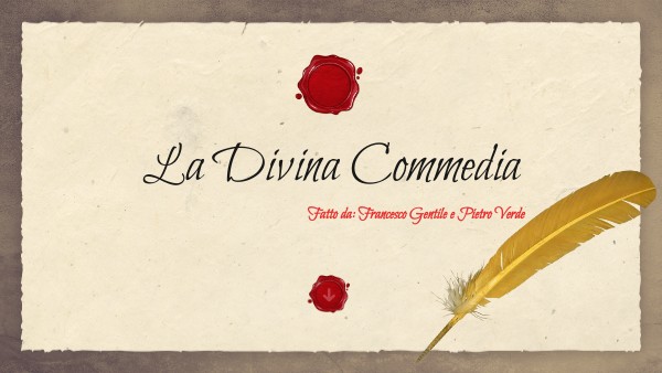 La Divina Commedia è un poema scritto da Dante Alighieri tra il 1304 e il 1321, anni in cui era costretto a vivere lontano dalla città di Firenze. L’opera in versi è suddivisa in tre cantiche: Inferno, Purgatorio e Paradiso; ciascuna rappresentante una fase distintiva del viaggio dell'anima attraverso l'oltretomba.
