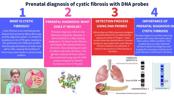 Prenatal diagnosis refers to the detection of genetic diseases or abnormalities in a fetus during pregnancy. To detect cystic fibrosis, techniques like amniocentesis or chorionic villus sampling are used to obtain cells from the fetus. The genetic material of these cells is then examined using specific DNA probes designed to identify mutations in the CFTR gene.