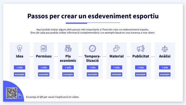 Aquí podràs trobar alguns dels passos més importants a l'hora de crear un esdeveniment espotiu. Dins de cada pas podràs trobar informació complementària i un exemple basat en una travessa a mar obert.