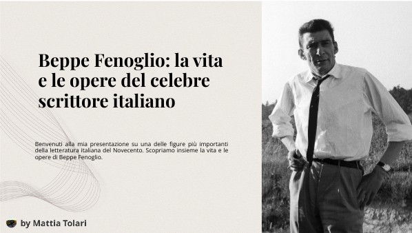 Benvenuti alla mia presentazione su una delle figure più importanti della letteratura italiana del Novecento. Scopriamo insieme la vita e le opere di Beppe Fenoglio.