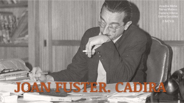 Joan Fuster va ser un assagista molt important en la literatura del segle XX, i membre de la corrent del intel.lectualisme compromés. Fou percusor del gènere de l'assaig (un gènere que va nàixer a l'exili dels escriptors) a Catalunya. Fuster, escrivia reflexions basades en l'èsser humà i, al mateix temps, feia reflexionar als seus lectors sobre problemes actuals; el seu objectiu era mostrar el seu punt de vista de realitat. La seua carrera literaria està dividida en tres etapes: - temàtica humanística - temàtica sociopolítica - crítica i història literàries
