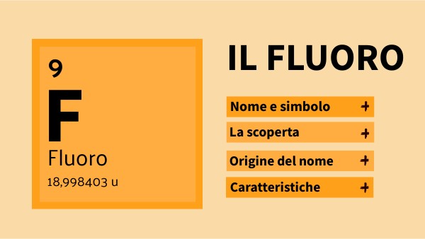 Il fluoro è l'elemento chimico della tavola periodica più reattivo ed elettronegativo ed ha come simbolo F e numero atomico 9. Configurazione elettronica: [He] 2s²2p⁵