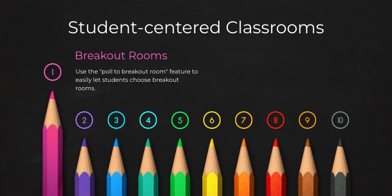 Use the "poll to breakout room" feature to easily let students choose breakout rooms.