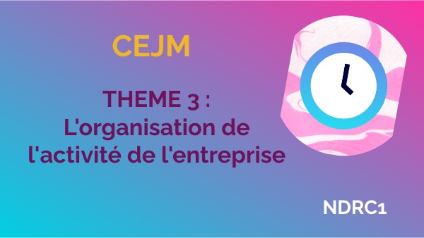 THEME 3 : L'organisation de l'activité de l'entreprise