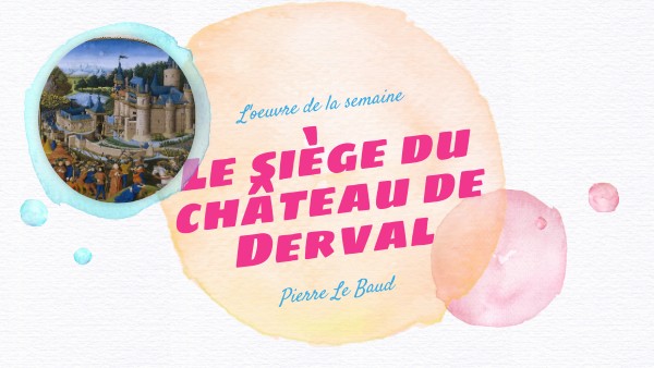 Cette oeuvre est une enluminure du Moyen-Age. Une enluminure est une décoration faite à la main qui orne un manuscrit. Les livres étaient copiés et illustrés par des enlumineurs. Celle-ci représente un château et ses assaillants.