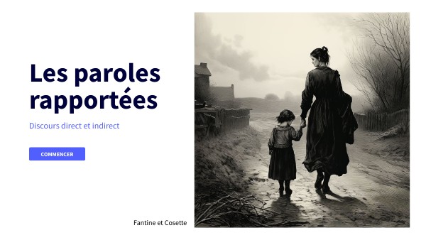 A partir d'extraits du roman Les Misérables évoquant le personnage de Fantine, vous allez vous exercer sur la notion de paroles rapportées dans un récit.