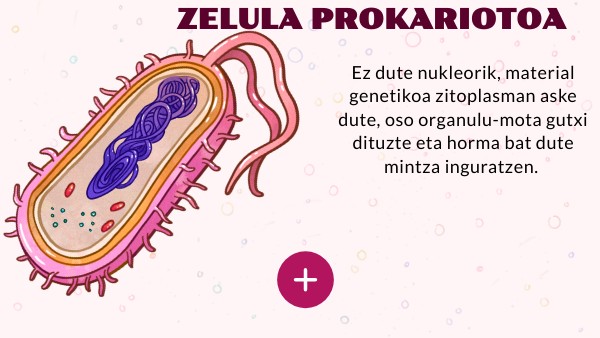- Zelula prokariotaren elementu bereizgarrietako bat nukleorik ez duela da. Horren truke, nukleoidea deritzona du, zelula horien barruan dagoen eremu irregularra..
