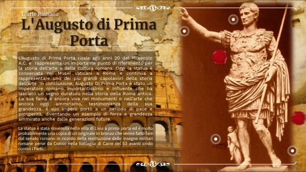 L’Augusto di Prima Porta risale agli anni 20 del 1° secolo A.C. e rappresenta un importante punto di riferimento per la storia dell’arte e della cultura romana. Oggi la statua è conservata nei Musei Vaticani a Roma e continua a rappresentare uno dei più grandi capolavori della storia dell’arte. In conclusione, Augusto Di Prima Porta è stato un imperatore romano importantissimo e influente che ha lasciato un segno duraturo nella storia della Roma antica. La sua fama è ancora viva nei monumenti e nell’arte che ancora oggi ammiriamo, testimonianza della sua grandezza. Il suo impero portò a un periodo di pace e prosperità, diventando un esempio di forza e grandezza ammirato anche dalle generazioni future.