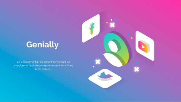 Genially est une plateforme en ligne permettant de créer du contenu interactif et visuellement attrayant tel que des présentations, des infographies, des jeux et des quiz. Genially est conçu pour simplifier le processus de création de contenu engageant, en offrant une variété d'outils et de fonctionnalités pour vous aider à interagir avec votre public.