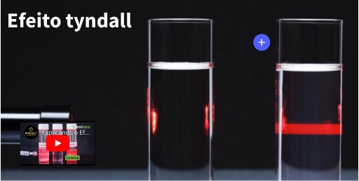 O efeito Tyndall, característico dos coloides ou soluções coloidais, consiste na dispersão da luz pelas partículas coloidais ou partículas em suspensão. A dispersão da luz deve-se ao facto do tamanho das partículas (10-9 a 10-6 m) ser da mesma ordem de grandeza do comprimento de onda da radiação visível (entre 10-7 e 10-6 m)