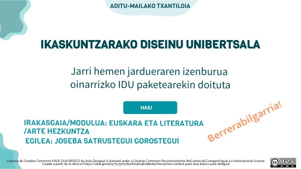 Licencia de Creative Commons PACK DUA BÁSICO by Aula Desigual is licensed under a Creative Commons Reconocimiento-NoComercial-CompartirIgual 4.0 Internacional License. Creado a partir de la obra en https://view.genial.ly/5c332137b47b536e4b39be9a/interactive-content-pack-dua-basico-aula-desigual.