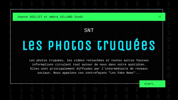 Les photos truquées, les vidéos retouchées et toutes autres fausses informations circulent tout autour de nous dans notre quotidien. Elles sont principalement diffusées par l'intermédiaire de réseaux sociaux. Nous appelons ces contrefaçons "Les Fake News"...