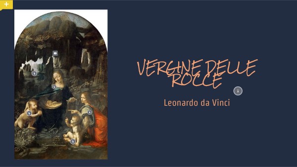La grotta rappresenta l'utero materno, il luogo della rinascita ed il passaggio nell'Aldilà. La roccia è strettamente in relazione con la missione di Cristo sulla terra. La Vergine è ritratta nella sua funzione di protezione materna . L'angelo indica Giovanni Battista in preghiera, messaggero della Redenzione. Il dito rivolto verso l'alto indica la dimensione superiore ed ultraterrena, alla quale Gesù è predestinato