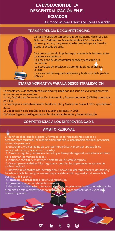 La transferencia de competencias del Gobierno Nacional a los Gobiernos Autónomos Descentralizados (GADs) ha sido un proceso gradual y progresivo que ha tenido lugar en Ecuador desde la década de 1990. Este proceso ha sido impulsado por una serie de factores, entre los que se encuentran: La necesidad de descentralizar el poder y acercarlo a la ciudadanía. La necesidad de fortalecer la autonomía de los gobiernos locales. La necesidad de mejorar la eficiencia y la eficacia de la gestión pública.