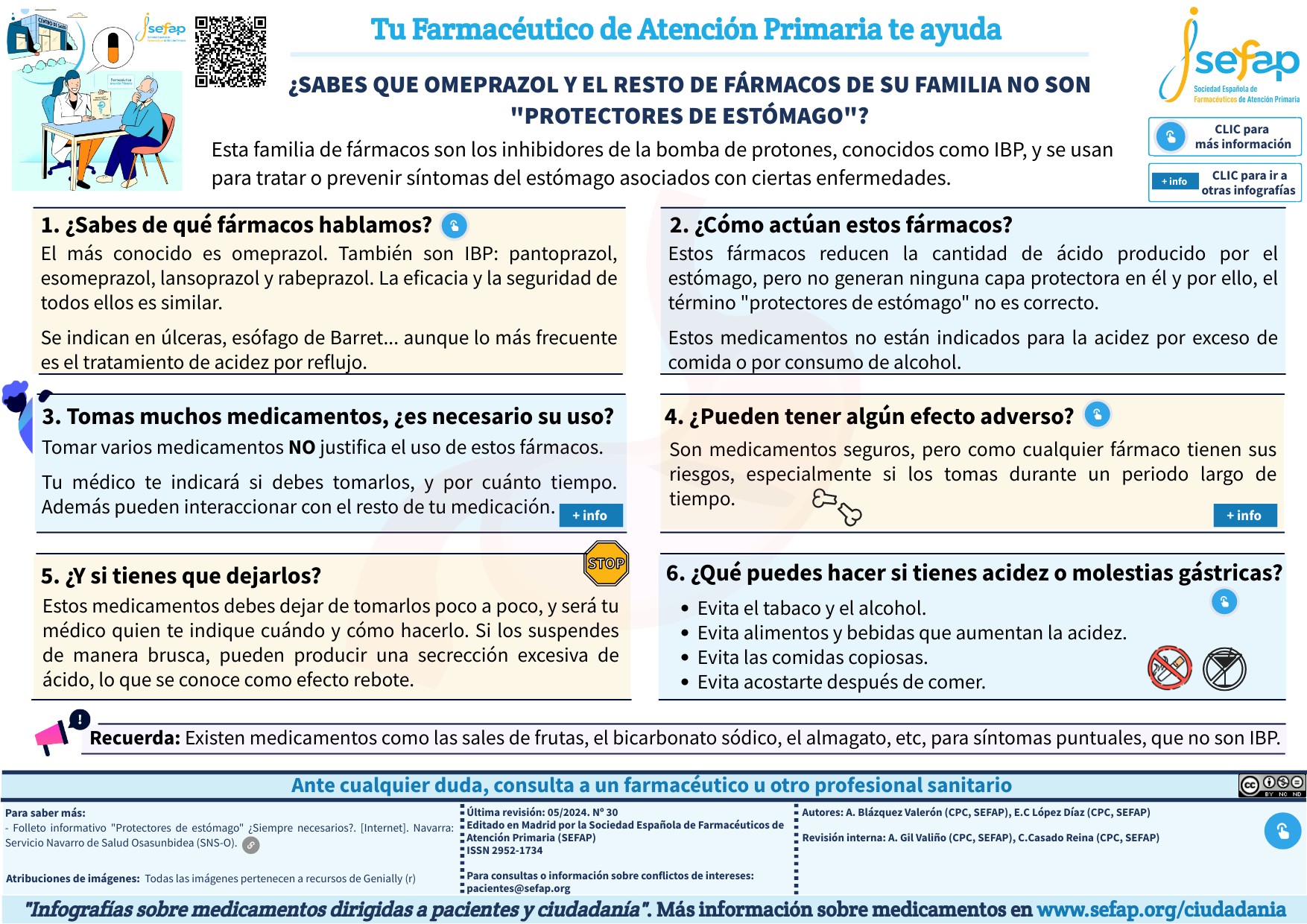 Al hacer clic en el botón de "+ info", accederás a otra infografía (o folleto) que hemos elaborado desde SEFAP y que contienen información sobre el aspecto del que estamos hablando en ese punto.