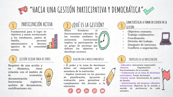 • El poder y la toma de decisiones deben ser compartida por los miembros de la institución.• Implica intervenir en los procesos de planificación, ejecución y evaluación para garantizar el cumplimiento del derecho a la educación.