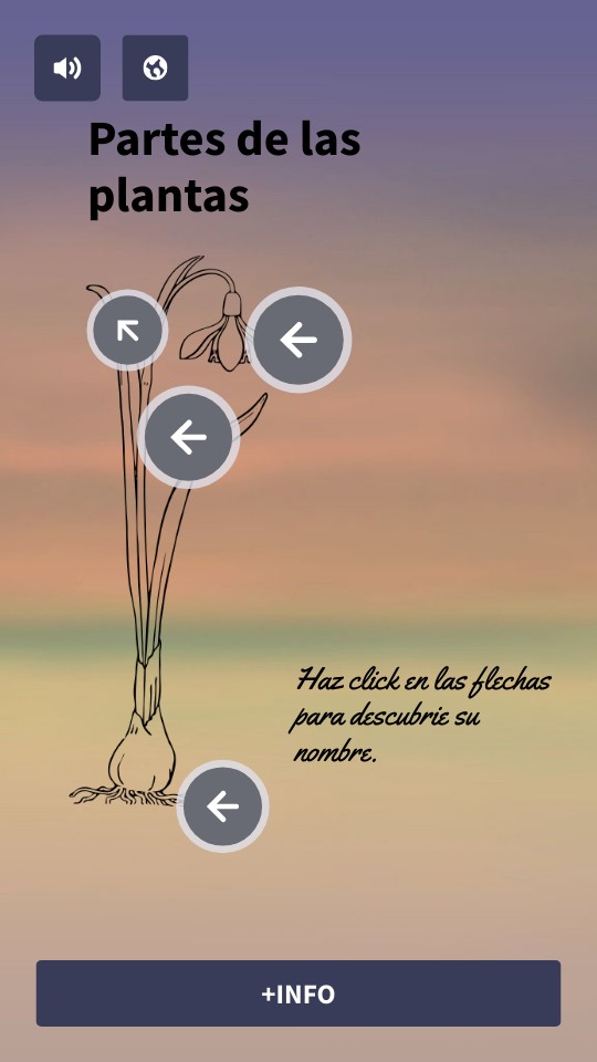 Imagen interactiva sencilla con los nombres de las partes de las plantas en español.