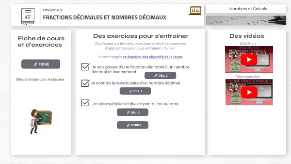 En cliquant sur les liens, vous avez accès à des exercices d'applications pour vous entrainer / réviser. Ils sont rangés en fonction des objectifs de la leçon.