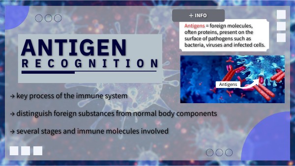 → key process of the immune system→ distinguish foreign substances from normal body components → several stages and immune molecules involved
