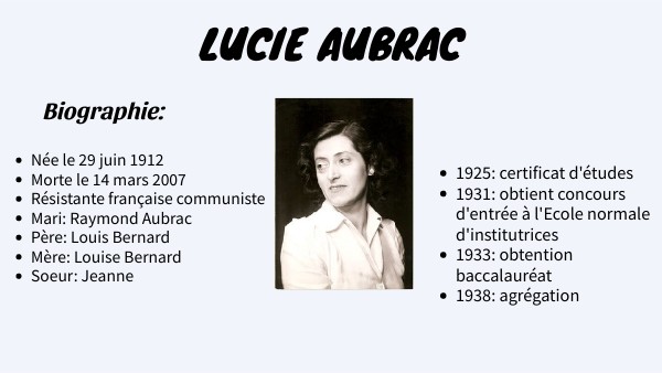 - Témoignage de Lucie Aubrac dans les écoles, lycées et collèges