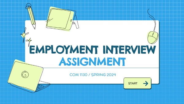 This assignment is designed to give you the opportunity to be the interviewee and interviewer in a mock employment interview. You will also learn how to create a cover letter and professional resumé.